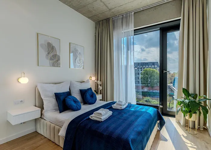 Apartmán River Premium Apartment B nabízí rychlý přístup k Pasaz Niepolda alley a obsahuje výhledy na město. Slovenský park je 2 kilometrů od apartmánu, a Vratislavská multimediální fontána je asi 4 kilometrů daleko.